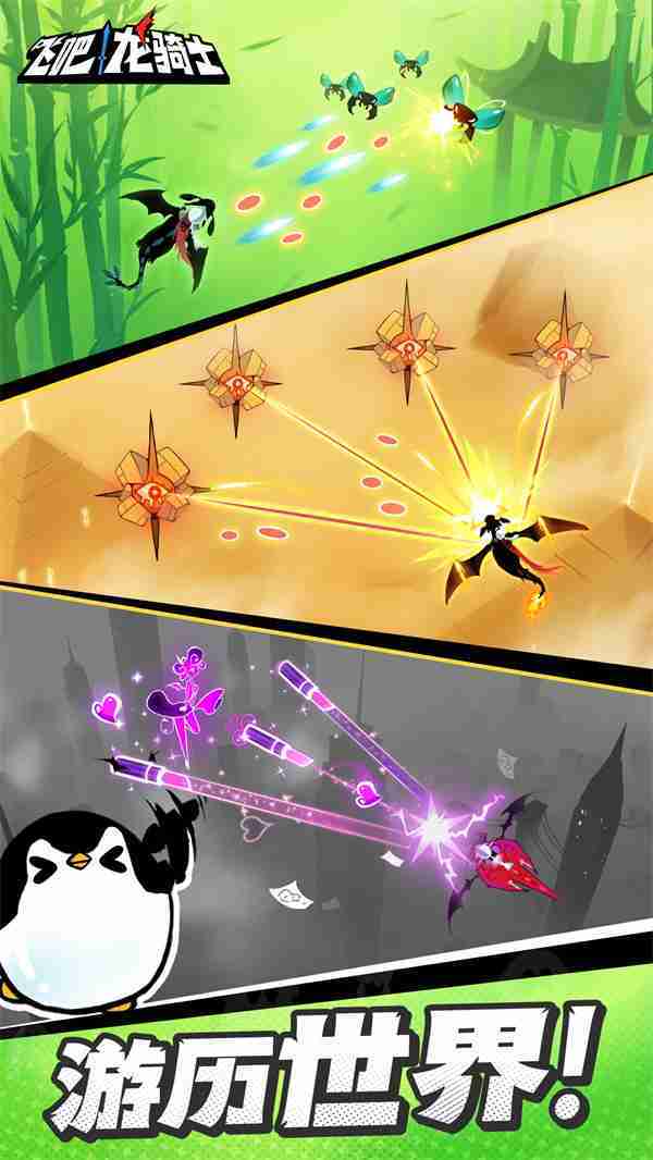 《飞吧龙骑士》是一款集合了飞行弹幕射击、、Roguelike要素和挂机养成的休闲手游,,,,极具创意的吞食子弹反击玩法,,,,突破传统飞行射击的刻板限制,,,,带来了独特的爽快清屏体验。。。。