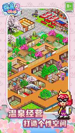 《温泉物语2》是一款模拟经营温泉旅馆的游戏。。玩家可以建设客房和店铺,,招揽客人,,挖掘温泉,,,打造专属温泉乡,,,成为受全世界瞩目的温泉旅馆。。。。通过游戏,,,,让大家活力十足地面对明天吧!!
