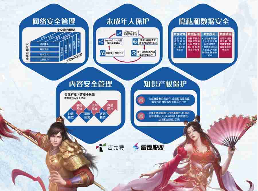本次亚星管理展区以网络安全管理、、、内容安全管理、、、、未成年人保护、、、隐私和数据安全、、知识产权保护五个模块介绍公司游戏安全工作成果,,,体现亚星管理高度重视网络安全,,,严格遵守相关法律法规要求,,积极承担企业主体责任。。。